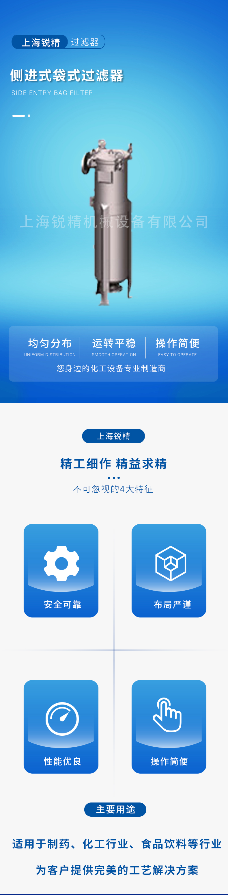 - 簡要描述:側(cè)進(jìn)式袋式過濾器?是一種壓力式過濾裝置,主要由過濾筒體、過濾筒蓋、快開機(jī)構(gòu)、不銹鋼濾袋加強(qiáng)網(wǎng)等主要部件組成。