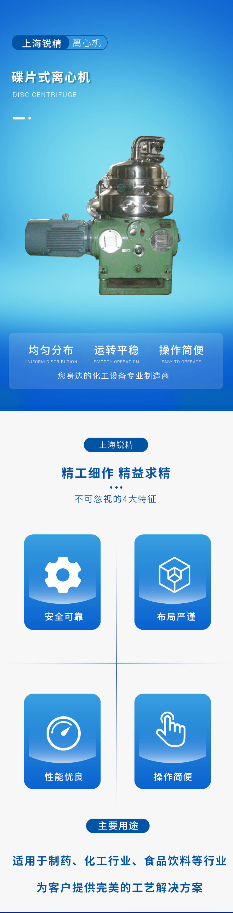 - 簡要描述:?碟片式離心機?是一種立式離心機,其轉鼓裝在立軸上端,通過傳動裝置由電動機驅動而高速旋轉